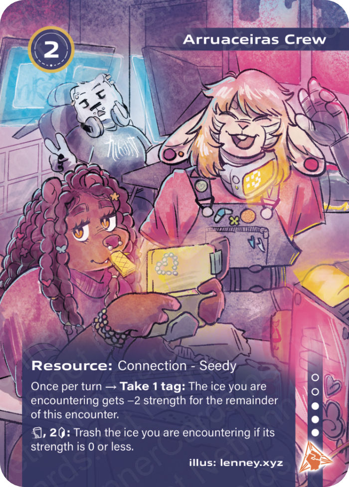 This pack contains 48x (16 playsets) alt-art Arruaceiras Crew by Lenney.xyz.