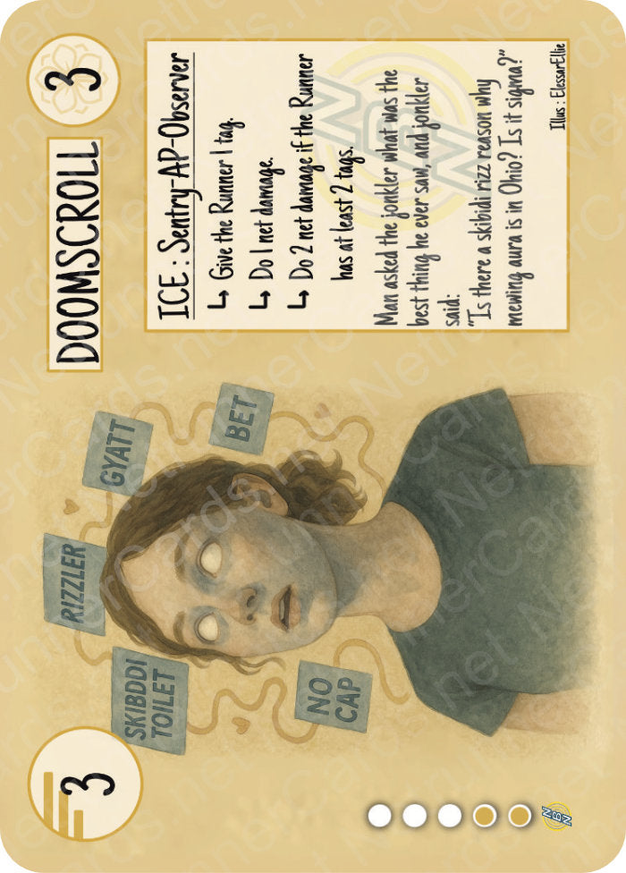 This pack contains 48x (16 playsets) alt-art Doomscrolls by ElessarEllie.