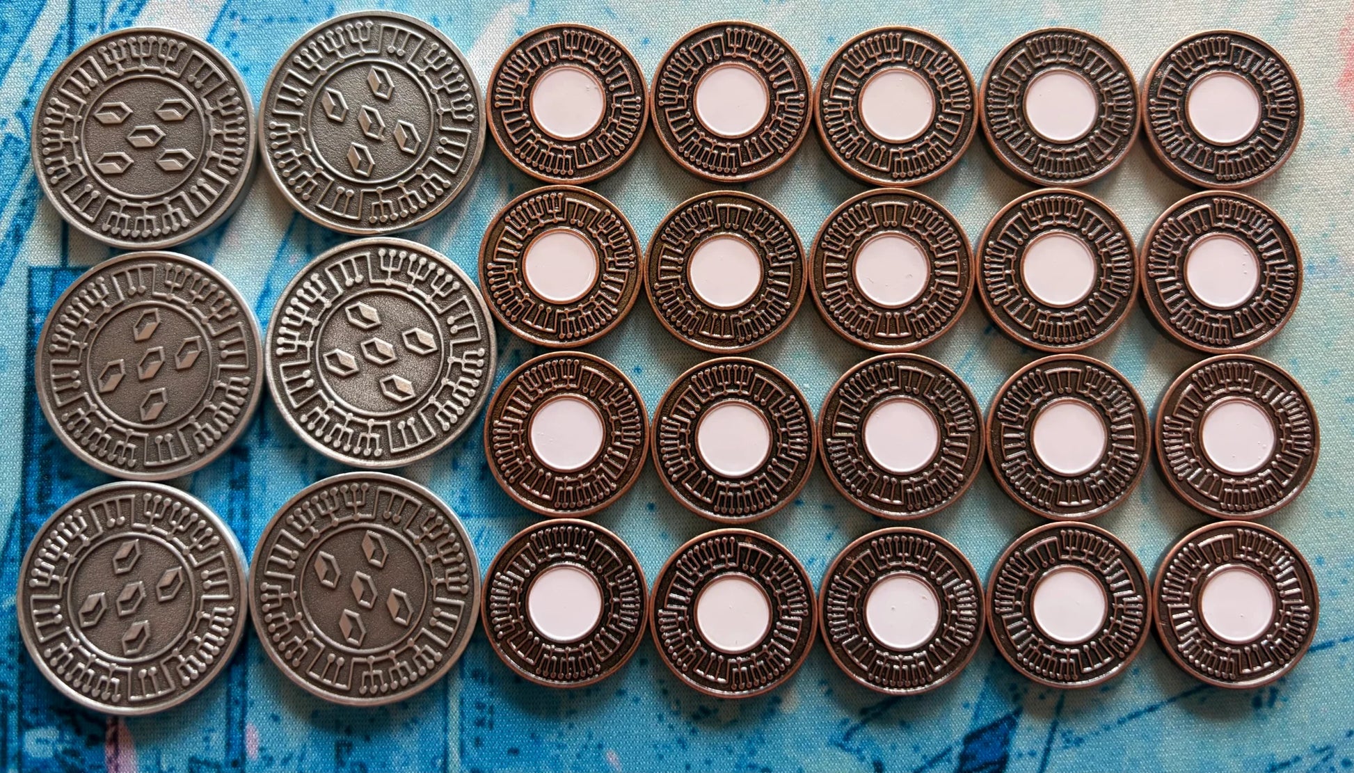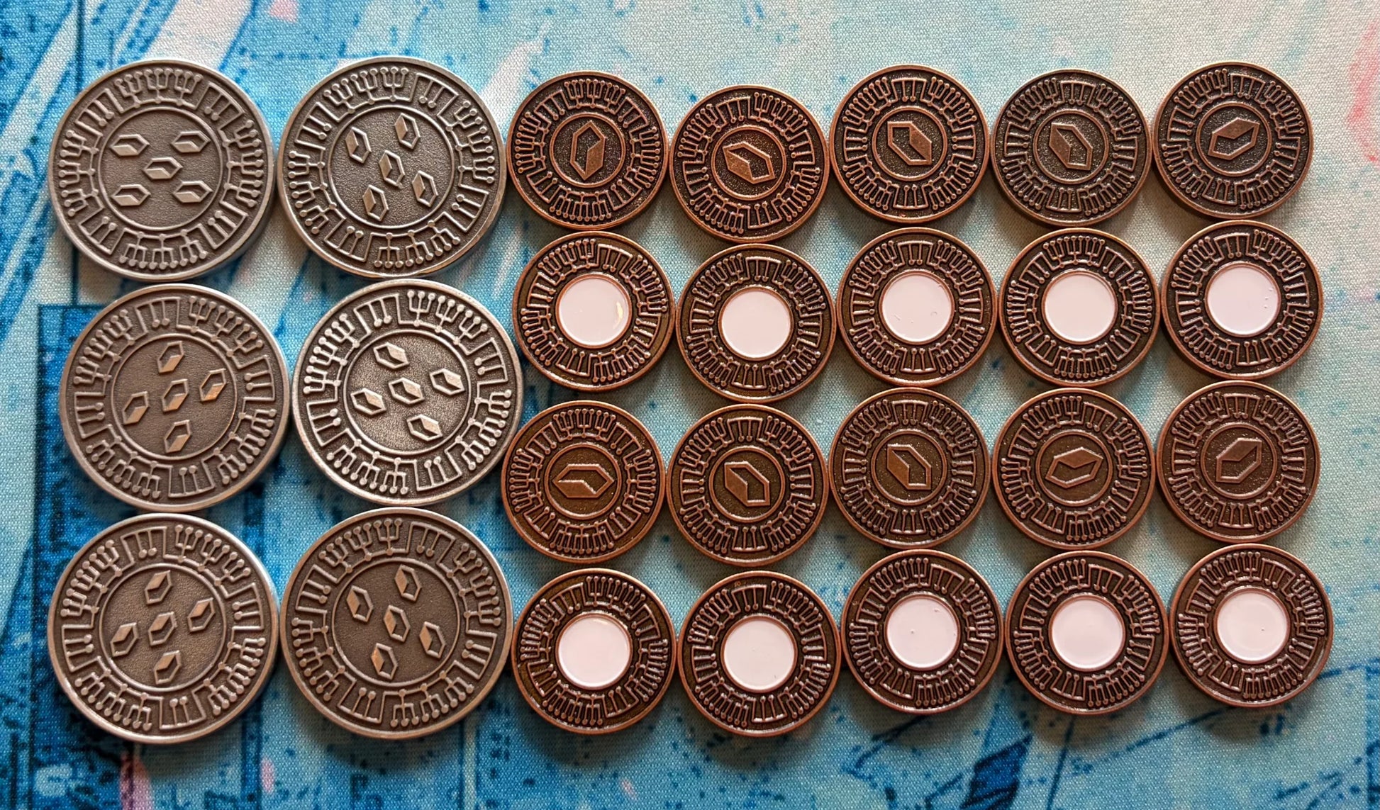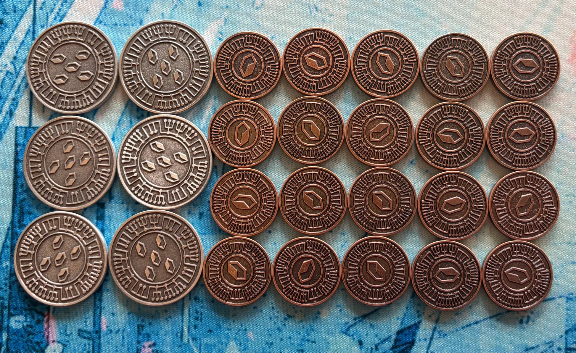Metal Netrunner credit tokens designed by ManintheMoon. Made from case zinc alloy, coins fully metal.