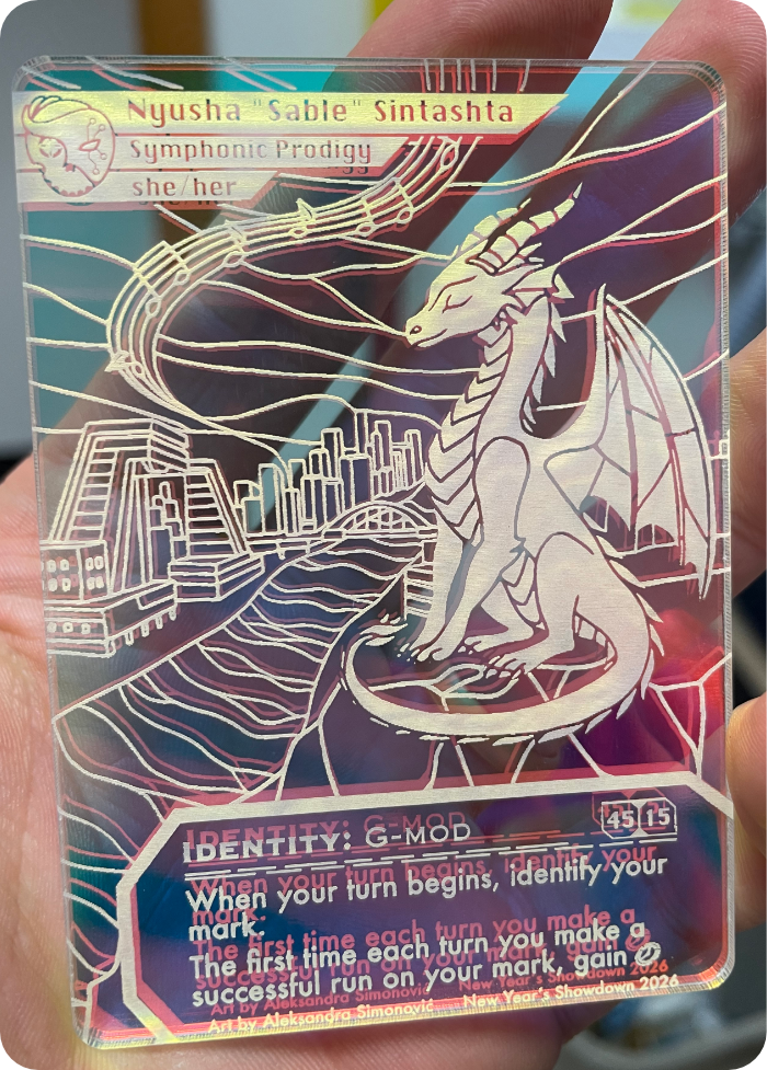 Showdowns are fairly casual and I make a special effort to make them approachable and inviting for newer players. This is a great place to start if you've never played in an online or any tournament before. There is even a bonus prize if you have never played in an online Showdown before! The online Showdowns are a great way to make connections with Netrunner players all around the globe! 😃 I expect this will be another epic Netrunner tournament bringing together new and old players of all skill levels for a wonderful day of connecting with friends and hacking servers 🥳